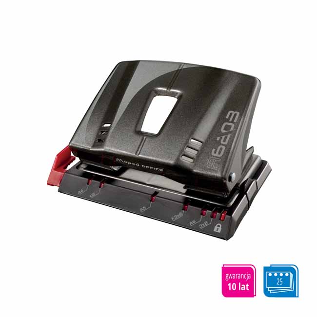 Czarny kolor dziurkacza nadaje mu elegancki wygląd, który doskonale wpasuje się w każde biuro. Produkt objęty jest 5-letnią gwarancją, co podkreśla jego trwałość i niezawodność.
