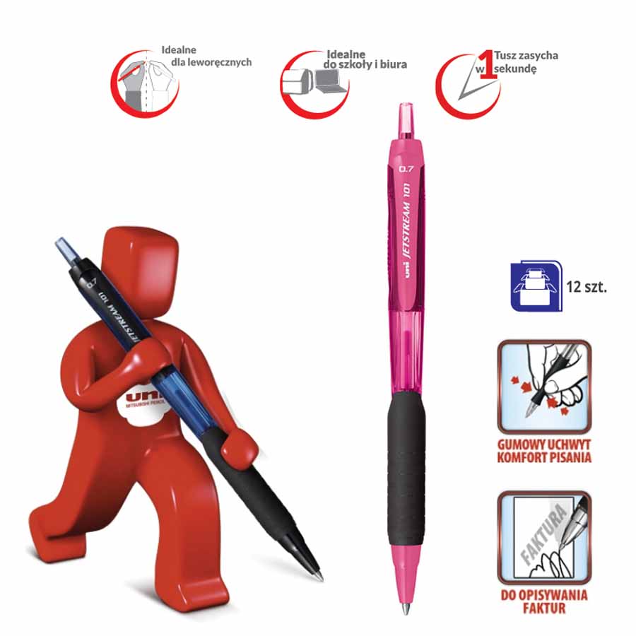 Długopis wyposażony jest w boczny system chowania wkładu, co zwiększa wygodę użytkowania i chroni wkład przed przypadkowym wysunięciem. To nowoczesne rozwiązanie zapewnia większą kontrolę nad długopisem i jego funkcjonalnością.