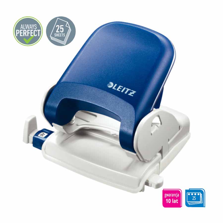 Eagle 837 umożliwia dziurkowanie do 25 kartek jednocześnie przy stałym rozstawie otworów wynoszącym 80 mm. Średnica dziurki 5,5 mm jest idealna do większości segregatorów, co czyni ten dziurkacz niezastąpionym narzędziem w każdym biurze. Produkt objęty jest 3-letnią gwarancją, zapewniając wysoką jakość i trwałość.