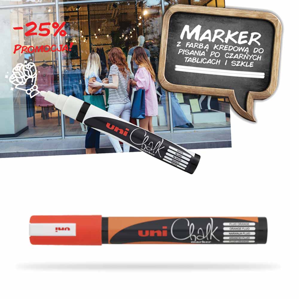 Marker UNI PWE5M oferuje grubość linii pisania od 1,8 do 2,5 mm, co zapewnia wyraźne i czytelne oznaczenia. Idealny do tworzenia eleganckich napisów i rysunków na tablicach kredowych i szkle.