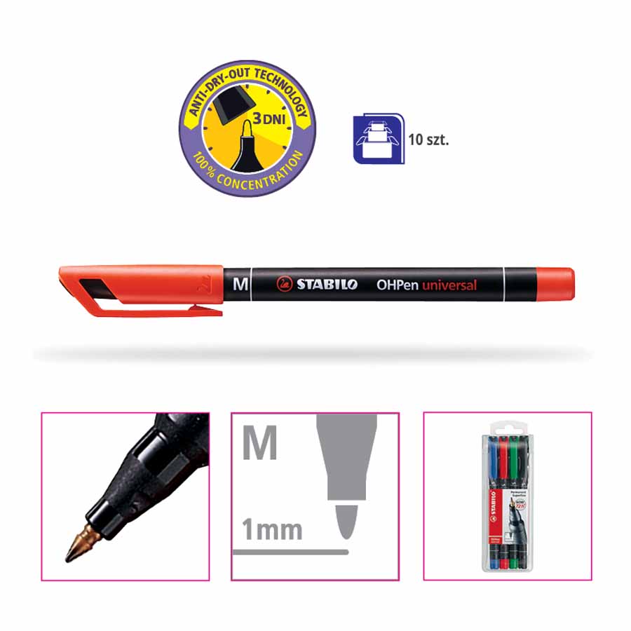 Zestaw foliopisów STABILO OHPen S w kolorach czarnym, czerwonym, zielonym i niebieskim jest niezwykle wszechstronny, idealny do pisania na szkle, torebkach foliowych, etykietach, zdjęciach, błyszczącym papierze, płytach CD oraz zdjęciach rentgenowskich. Ich uniwersalność sprawia, że są niezastąpione w wielu sytuacjach.