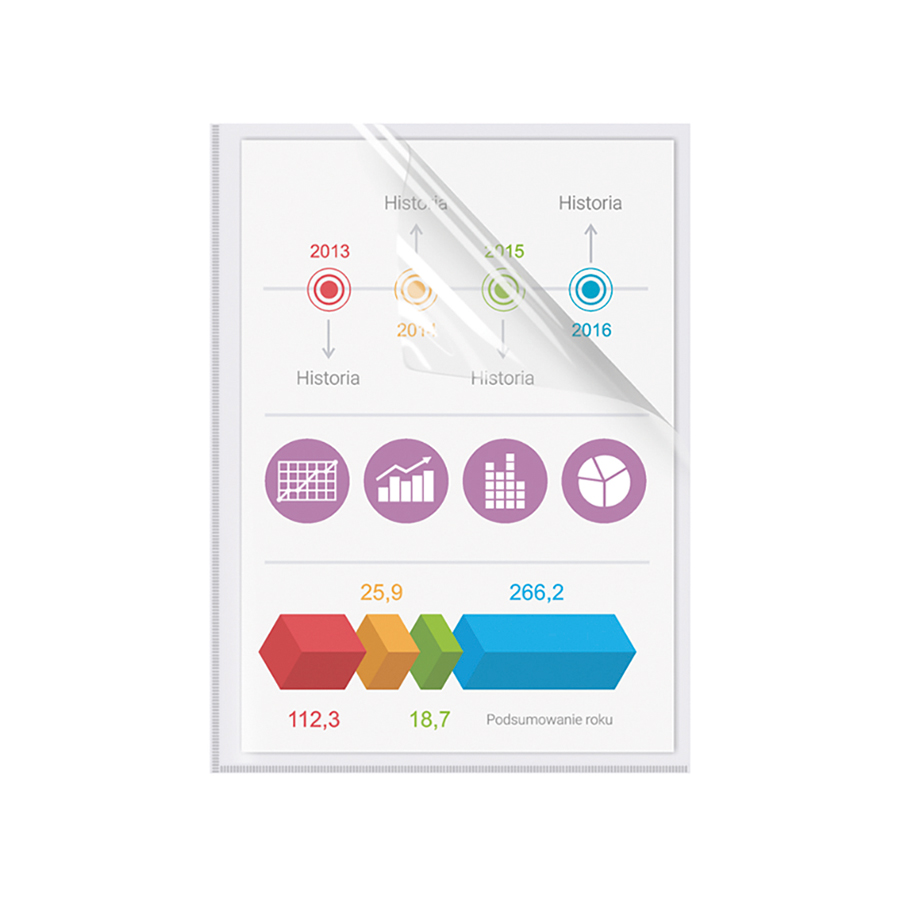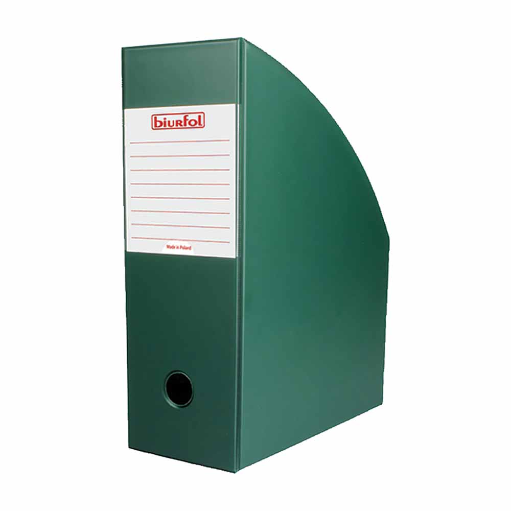 - pojemnik jest pogłębiony, tzn. można w nim swobodnie przechowywać pliki dokumentów wpiętych w skoroszyty, itp. okładki