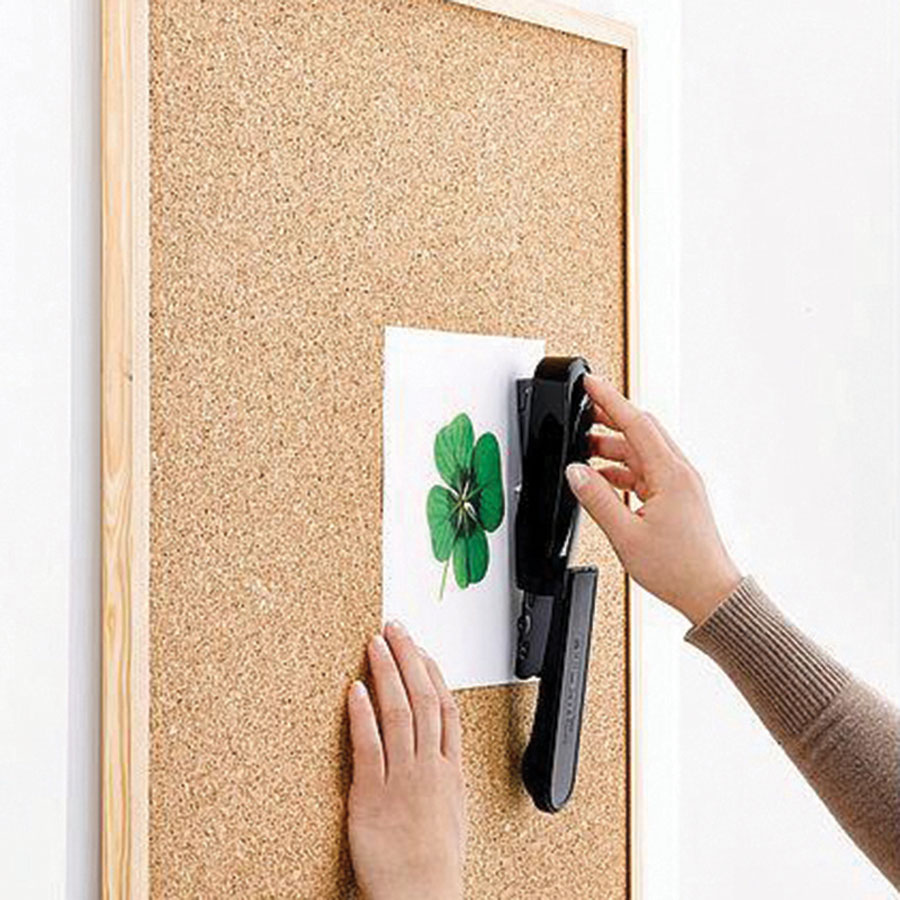 - zszywacz biurowy z systemem bardzo płaskiego zakleszczania zszywek (Flat-Clinch) co pozwala na umieszczenie w segregatorze nawet 30% więcej zszytych dokumentów w porównaniu z dokumentami zszywanymi standardowo
