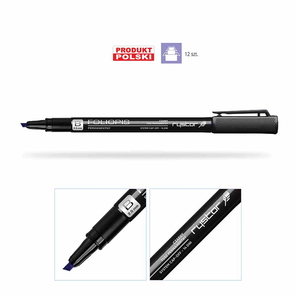 Tusz w foliopisie Rystor S schnie szybko, nie rozmazuje się, jest wodoodporny i odporny na działanie promieni słonecznych. Dzięki temu oznaczenia są trwałe i wyraźne, a intensywność barw pozostaje niezmieniona.