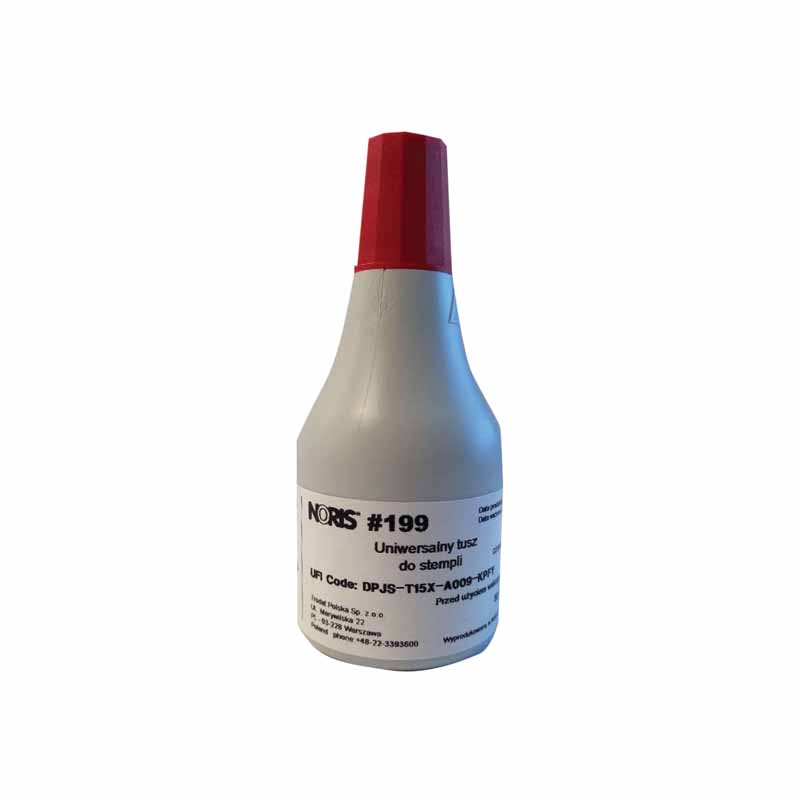 Tusz Noris 210 jest dostępny w buteleczce o pojemności 25 ml, która jest wyposażona w końcówkę ułatwiającą nasączenie poduszek. Dzięki temu napełnianie poduszek tuszem jest szybkie i bezproblemowe, a nakrętka w kolorze tuszu pozwala na łatwą identyfikację i wygodne przechowywanie.
