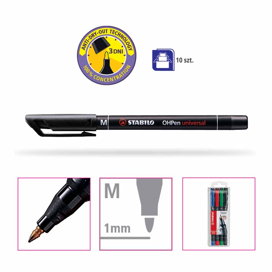 Okrągła końcówka w metalowej oprawce zapewnia pisanie linią o szerokości 1 mm, idealną do czytelnych i wyrazistych oznaczeń. Świetnie nadaje się do różnorodnych zadań, od notatek po precyzyjne rysunki.