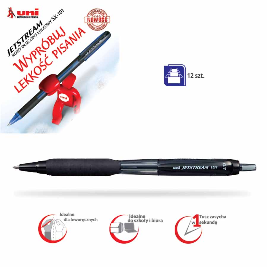 Długopis żelowy GR 101 - z wymiennym wkładem, ergonomicznie podgumowany uchwyt oraz transparentna obudowa umożliwiająca kontrolę zużycia wkładu, pakowany po 12 sztuk z danego koloru, jednostka sprzedaży 1 sztuka