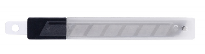 nóż biurowy do rozcinania różnych materiałów wysuwane 7-częściowe ostrze z możliwością odłamywania stępionych części blokada unieruchamiająca ostrze obudowa wykonana z polistyrenu (żółte elementy) i ABS'u (niebieskie elementy) ostrze wykonane ze stali hartowanej szerokość ostrza: 18mm długość ostrza: 100mm kolor niebiesko-żółty