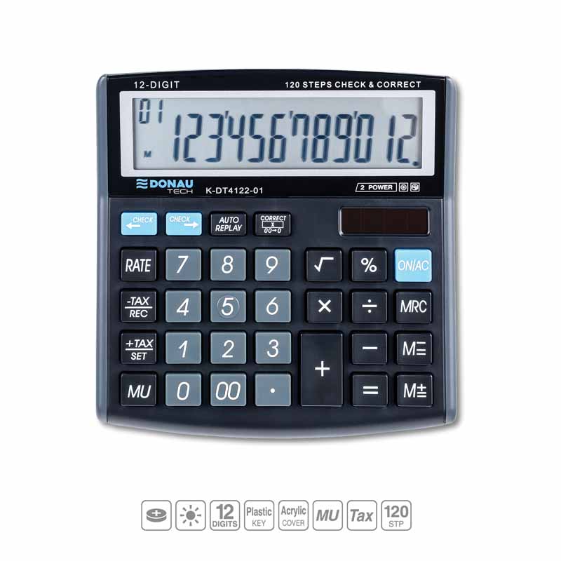 Kalkulator wyróżnia się czytelnym układem klawiszy, które pozwalają na szybkie i sprawne wykonywanie obliczeń. Jego ergonomiczny design sprawia, że jest wygodny w użytkowaniu zarówno w pracy biurowej, jak i podczas codziennych operacji finansowych.