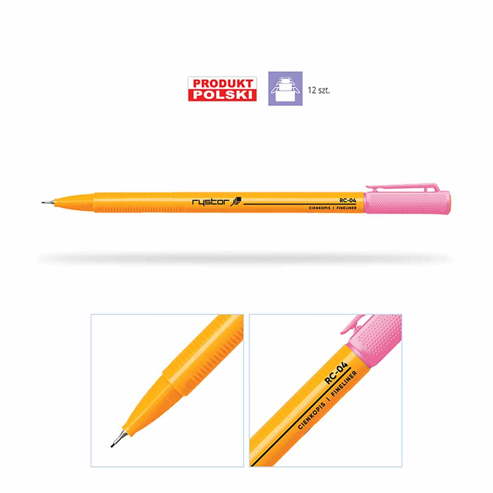 Cienkopis posiada wentylowaną skuwkę, która idealnie przylega do nasady, zapobiegając przypadkowemu zgubieniu. Kolorowe elementy obudowy odpowiadają barwie tuszu, co ułatwia szybkie odnalezienie właściwego odcienia. Grubość linii pisania wynosi 0,4 mm – idealna zarówno do pisania, jak i precyzyjnych szkiców.